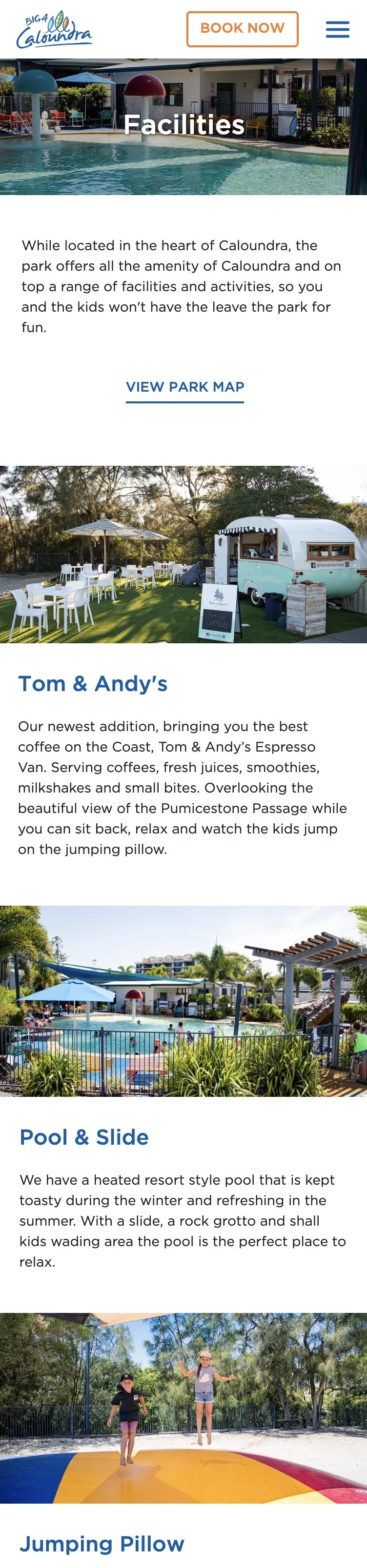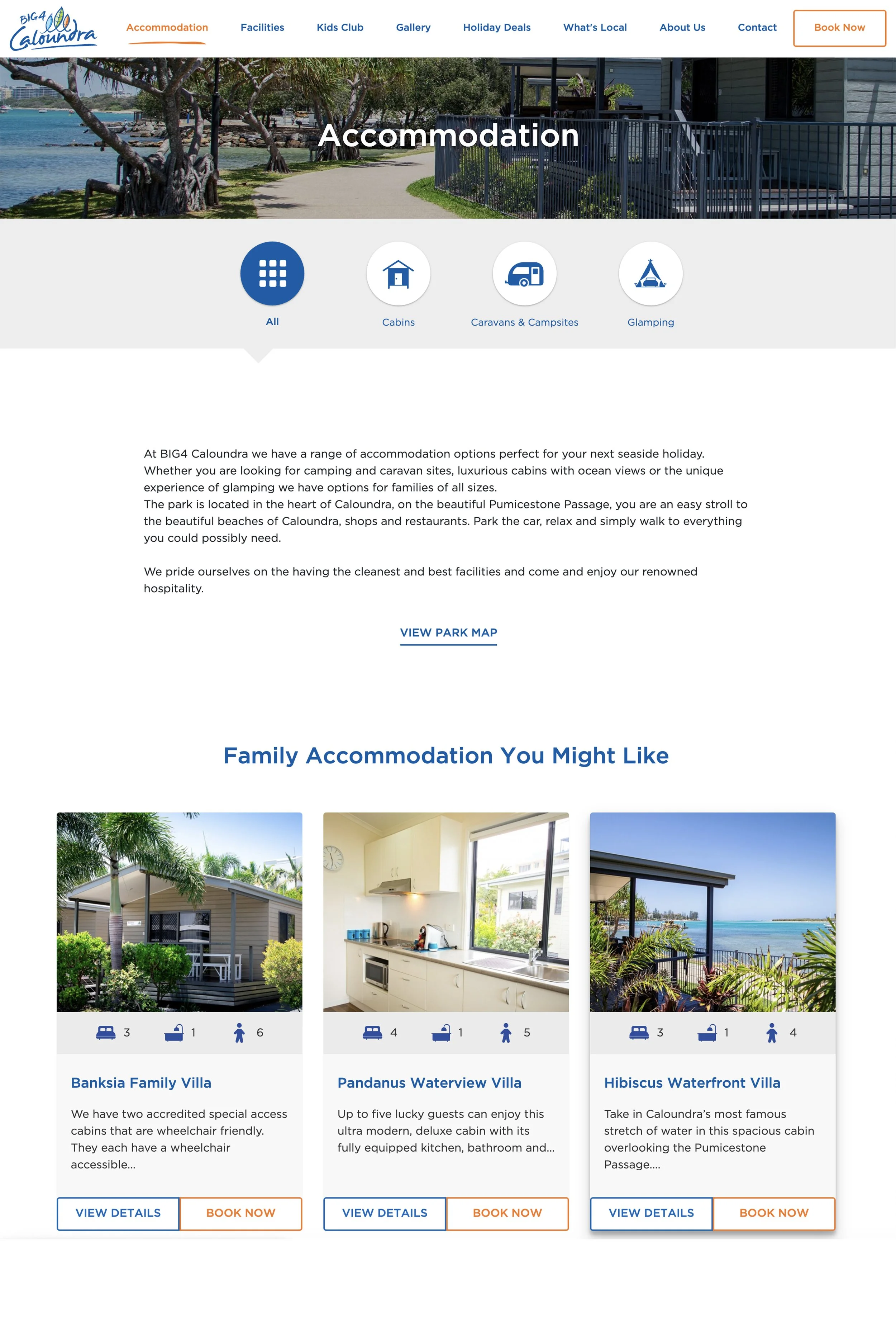 BIG4 Caloundra located on the Sunshine Coast, Australia took me on to manage all marketing and design material. We started with the recreation of their website.